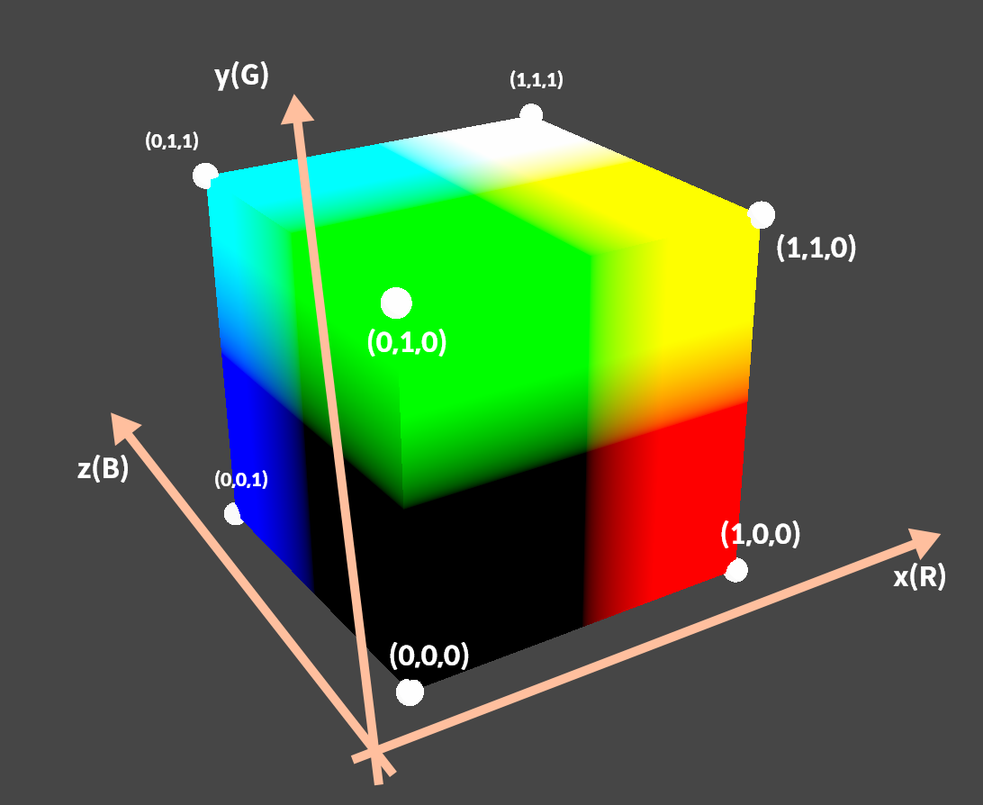 nx3 행렬 데이터 즉, Vector 3을 예로 들어보겠습니다. Position 노드에서 1열, 2열, 3열 데이터는 각각 x, y, z 축을 의미합니다. Color 노드에서는 1열, 2열, 3열 데이터가 R, G, B 채널을 의미합니다. 하지만 두 노드에서 좌표 '0,0,0'과 가산혼합에서의 '검은색'은 똑같은 (0,0,0) 데이터를 가지고 있습니다. 모든 노드들의 데이터 형태는 같지만, 노드들이 좌표, 컬러, UV로 사용할 수 있는 데이터 배열을 만들어 주고 이름을 붙여줍니다(데이터를 보간하거나 사칙연산해주기도 합니다.).